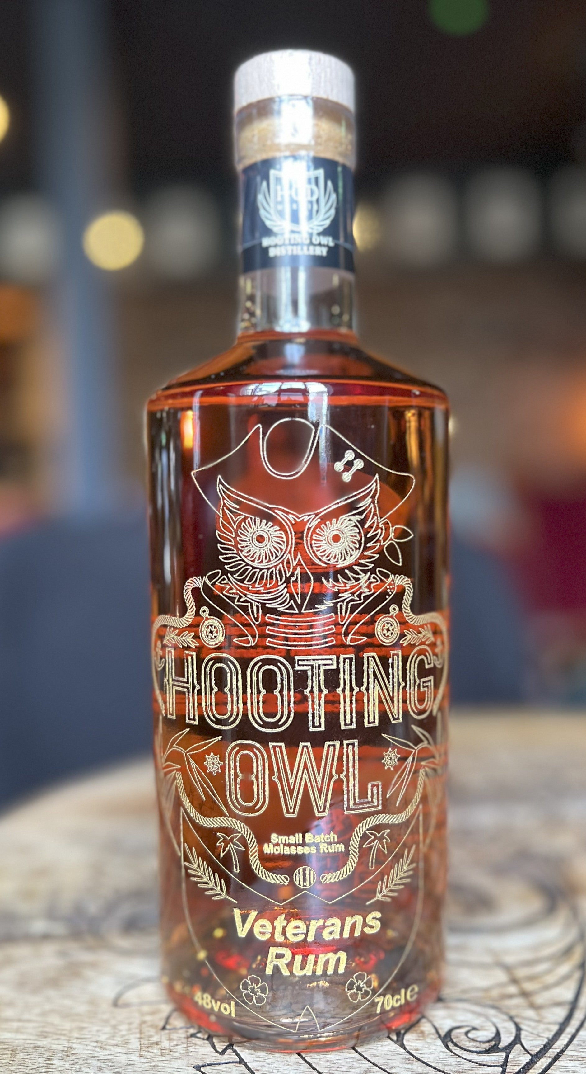 With a nod to the smuggling of old, we import the finest rum. Then we add botanicals, from Sir Owlfred's secret recipe, steep, re-distil and barrel age with molasses to produce this unique, smooth botanical Veterans Rum.